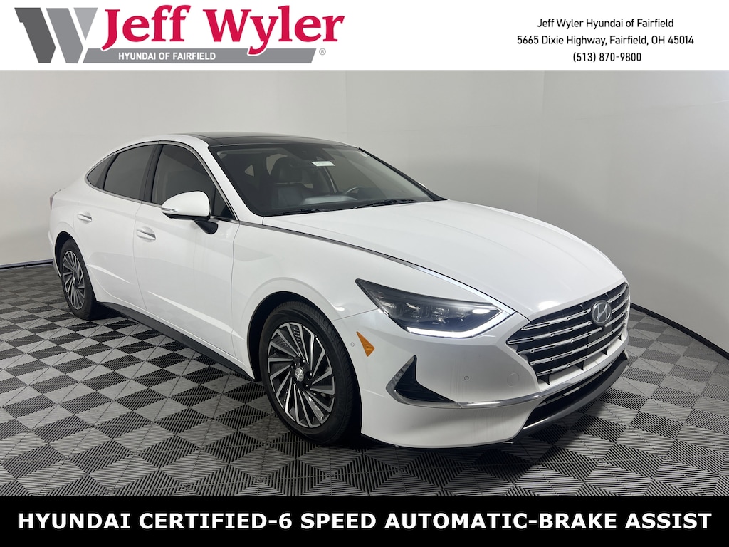 Jeff Wyler Hyundai of Fairfield is honored to offer this terrific-looking 2023 Hyundai Sonata Hybrid Limited in Serenity White. Well equipped with: Option Group 01, Hyundai Certified Used Vehicles Certified, I4, Android Auto, Apple CarPlay, CALL NOW FOR YOUR VIP APPOINTMENT 513-870-9800, FULLY SERVICED w/RECORDS, GUARANTEED FINANCING!! NO MATTER YOUR SITUATION WE CAN GET AN APPROVAL!!, THE #1 Volume dealer in the region! Come see why for yourself Today!!, WE PAY MORE FOR YOUR TRADE!!, 12 Speakers, 17" x 7.0J Aluminum Alloy Wheels, 4-Wheel Disc Brakes, ABS brakes, Air Conditioning, Alloy wheels, AM/FM radio: SiriusXM, Apple CarPlay & Android Auto, Auto High-beam Headlights, Auto-dimming Rear-View mirror, Automatic temperature control, Brake assist, Bumpers: body-color, Cargo Net, Carpeted Floor Mats, Delay-off headlights, Driver door bin, Driver vanity mirror, Dual front impact airbags, Dual front side impact airbags, Electronic Stability Control, Emergency communication system: Blue Link Connected Car Service (3-year complimentary subscription), Four wheel independent suspension, Front anti-roll bar, Front Bucket Seats, Front Center Armrest, Front dual zone A/C, Front reading lights, Fully automatic headlights, Garage door transmitter: HomeLink, Heads-Up Display, Heated & Ventilated Front Bucket Seats, Heated door mirrors, Heated front seats, Heated steering wheel, Illuminated entry, Knee airbag, Lane Departure Warning System, Leather Seating Surfaces, Leather steering wheel, Low tire pressure warning, Memory seat, Navigation System, Occupant sensing airbag, Outside temperature display, Overhead airbag, Overhead console, Panic alarm, Passenger door bin, Passenger vanity mirror, Power door mirrors, Power driver seat, Power moonroof, Power passenger seat, Power steering, Power windows, Radio data system, Radio: AM/FM/SiriusXM/MP3 w/Navigation, Rain sensing wipers, Rear air conditioning, Rear anti-roll bar, Rear Bumper Applique, Rear seat center armrest, Rear side impact airbag, Rear window defroster, Remote keyless entry, Reversible Cargo Tray, Security system, Speed control, Speed-sensing steering, Speed-Sensitive Wipers, Split folding rear seat, Spoiler, Steering wheel mounted audio controls, Telescoping steering wheel, Tilt steering wheel, Traction control, Trip computer, Turn signal indicator mirrors, Variably intermittent wipers, and Ventilated front seats. Certified. Hyundai Certified Used Vehicles Details: * 173+ Point Inspection * Includes 10-year/Unlimited Mileage Roadside Assistance with Rental Car and Trip Interruption Reimbursement; Please See Dealers for Specific Vehicle Eligibility Requirements. 10-Year/100,000 Mile Hybrid/EV Battery Warranty. 3-Months SiriusXM Trial Subscription. Complimentary 1 Year (Connected Care & Remote Pkgs). * Limited Warranty: 60 Month/60,000 Mile (whichever comes first) from original in-service date * Roadside Assistance * Vehicle History * Warranty Deductible: $50 * Powertrain Limited Warranty: 120 Month/100,000 Mile (whichever comes first) from original in-service dateTO CHECK ON THE AVAILABILITY OF THIS VEHICLE REACH OUT TO ONE OF OUR TEAM MEMBERS!! ALSO SHOP ONLINE AT https://www.jeffwylerhyundaioffairfield.com/ Proudly Serving: Cincinnati, Dayton, Columbus, Louisville, Lexington, Indianapolis, Hamilton, Florence, Alexandria, Beavercreek, Springdale, West Chester, Monroe, Fairfield, Kenwood, Newport and all of greater Cincinnati Ohio, Indiana, and Northern Kentucky.