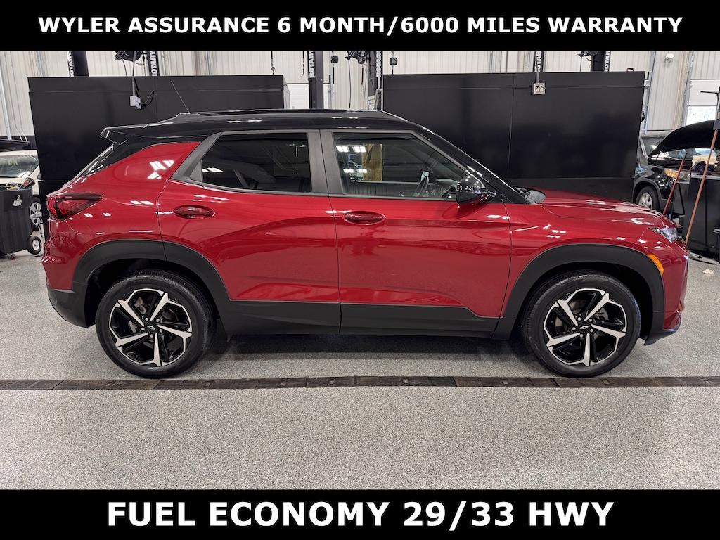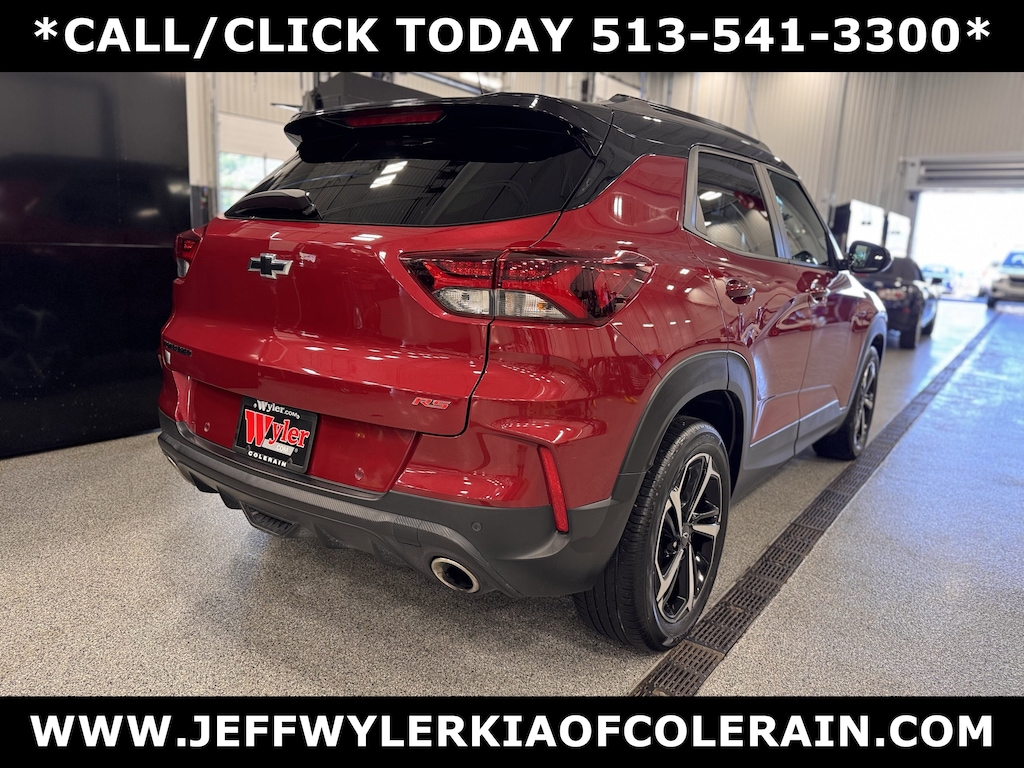 Jeff Wyler Kia of Colerain is excited to offer this great 2021 Chevrolet TrailBlazer RS in Scarlet Red Metallic. Convenience Package (1 Type-A & 1 Type-C USB Charging-Only Ports, 120-Volt Power Outlet, 8" Diagonal Color Touchscreen Display, Cabin Humidity Sensor, Driver & Front Passenger Illuminated Vanity Mirrors, Inside Rear-View Auto-Dimming Mirror, Single-Zone Auto Climate Control Air Conditioning, and SiriusXM Radio), Driver Confidence Package (Lane Change Alert w/Side Blind Zone Alert, Rear Cross Traffic Alert, and Rear Park Assist), Preferred Equipment Group 1RS, Sun & Liftgate Package (Dual-Pane Panoramic Power Sunroof and Hands-Free Power Programmable Liftgate), Technology Package (4.2" Diagonal Multi-Color Driver Info Center, Adaptive Cruise Control, Bose Premium 7-Speaker Audio System Feature, HD Radio, HD Rear Vision Camera, LED Headlamps, Memory Card Receptacle, Radio: Chevrolet Infotainment 3 Plus System, SiriusXM w/360L, and Wireless Charging), 2-Way Power Driver Lumbar Seat Adjuster, 4-Way Manual Front Passenger Seat Adjuster, 4-Wheel Disc Brakes, 5.45 Axle Ratio, 6 Speakers, 6-Speaker Audio System Feature, 8-Way Power Driver Seat Adjuster, ABS brakes, Air Conditioning, Alloy wheels, AM/FM radio, Apple CarPlay/Android Auto, Auto High-beam Headlights, Brake assist, Bumpers: body-color, Cloth w/Leatherette Seat Trim, Compass, Delay-off headlights, Driver door bin, Driver vanity mirror, Dual front impact airbags, Dual front side impact airbags, Electronic Stability Control, Emergency communication system: OnStar and Chevrolet connected services capable, Exterior Parking Camera Rear, Flat-Folding Front Passenger Seatback, Front anti-roll bar, Front Bucket Seats, Front Center Armrest, Front fog lights, Front License Plate Bracket, Front reading lights, Front wheel independent suspension, Fully automatic headlights, Heated door mirrors, Heated Driver & Front Passenger Seats, Heated front seats, Illuminated entry, Knee airbag, Leather Shift Knob, Leather steering wheel, Low tire pressure warning, Mosaic Black Metallic Two-Tone Roof, Occupant sensing airbag, Overhead airbag, Overhead console, Panic alarm, Passenger door bin, Passenger vanity mirror, Power door mirrors, Power driver seat, Power steering, Power windows, Radio data system, Radio: Chevrolet Infotainment 3 System, Rear seat center armrest, Rear side impact airbag, Rear window defroster, Rear window wiper, Remote keyless entry, Ride & Handling Suspension, Roof rack: rails only, Security system, Speed control, Split folding rear seat, Spoiler, Steering wheel mounted audio controls, Tachometer, Telescoping steering wheel, Tilt steering wheel, Traction control, Trip computer, Variably intermittent wipers, Wheels: 18" High Gloss Black Machined Aluminum, and Wireless Apple CarPlay/Android Auto Our PRE-OWNED vehicles are put through a rigorous 167- POINT QUALITY ASSURANCE INSPECTION along with an average amount of over $1,400.00 SPENT to recondition each vehicle so we can be sure to deliver you the highest quality vehicle like you deserve! ***ONLINE PRICE DOES NOT INCLUDE WYLER FAMILY FIRST PACKAGE***