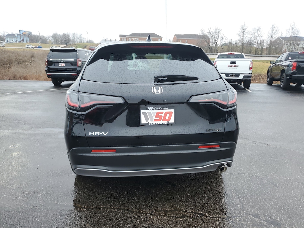 Jeff Wyler Florence Buick GMC is excited to offer this good-looking 2025 Honda HR-V Sport in Crystal Black Pearl. 18 Gloss Black Alloy Wheels, 180-Watt Audio System with 6 Speakers, 6 Speakers, Apple CarPlay/Android Auto, Auto High-beam Headlights, Automatic temperature control, Blind Spot Information (BSI) System warning, Delay-off headlights, Exterior Parking Camera Rear, Front Bucket Seats, Fully automatic headlights, Heated door mirrors, Heated Front Bucket Seats, Illuminated entry, Leather Shift Knob, Leather steering wheel, Power door mirrors, Remote keyless entry, Spoiler, Steering wheel mounted audio controls, Telescoping steering wheel, Tilt steering wheel, Turn signal indicator mirrors, 4-Wheel Disc Brakes, 5.436 Axle Ratio, ABS brakes, Adaptive Cruise Control: Adaptive Cruise Control (ACC) with Low-Speed Follow, Air Conditioning, AM/FM radio, Brake assist, Bumpers: body-color, Cloth Seat Trim, Driver door bin, Driver vanity mirror, Dual front impact airbags, Dual front side impact airbags, Electronic Stability Control, Four wheel independent suspension, Front anti-roll bar, Front Center Armrest, Front reading lights, Knee airbag, Low tire pressure warning, Occupant sensing airbag, Outside temperature display, Overhead airbag, Panic alarm, Passenger door bin, Passenger vanity mirror, Power steering, Power windows, Radio data system, Rear anti-roll bar, Rear reading lights, Rear side impact airbag, Rear window defroster, Rear window wiper, Security system, Speed control, Speed-sensing steering, Split folding rear seat, Tachometer, Traction control, Trip computer, and Variably intermittent wipers Our PRE-OWNED vehicles are put through a rigorous 167- POINT QUALITY ASSURANCE INSPECTION along with an average amount of over $1,400.00 SPENT to recondition each vehicle so we can be sure to deliver you the highest quality vehicle like you deserve! ***ONLINE PRICE DOES NOT INCLUDE WYLER FAMILY FIRST PACKAGE*** Stop by 1154 Burlington Pike Florence KY 41402to see for yourself, or give us a call @ 859-525-8001 to schedule your test drive!