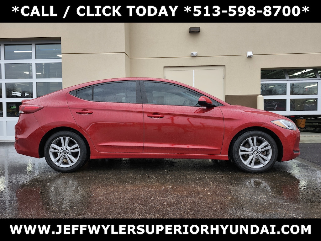 Jeff Wyler Superior Hyundai is very proud to offer this stunning-looking 2017 Hyundai Elantra SE in Scarlet Red Pearl. Well equipped with: Cargo Package, SE A/T Popular Equipment Package 07, 15" Steel Wheels w/Covers, 16" Alloy Wheels, 6 Speakers, ABS brakes, Air Conditioning, AM/FM radio: SiriusXM, Brake assist, Bumpers: body-color, Carpeted Floor Mats, CD player, Delay-off headlights, Driver door bin, Driver vanity mirror, Dual front impact airbags, Dual front side impact airbags, Electronic Stability Control, Front anti-roll bar, Front Bucket Seats, Front Center Armrest, Front reading lights, Front wheel independent suspension, Illuminated entry, Knee airbag, Low tire pressure warning, Occupant sensing airbag, Outside temperature display, Overhead airbag, Overhead console, Panic alarm, Passenger door bin, Passenger vanity mirror, Power door mirrors, Power steering, Power windows, Premium Cloth Seat Trim, Radio: AM/FM/HD/SiriusXM Display Audio, Radio: AM/FM/SiriusXM/CD/MP3 Audio System, Rear Bumper Applique, Rear window defroster, Remote keyless entry, Security system, Speed control, Speed-sensing steering, Split folding rear seat, Steering wheel mounted audio controls, Tachometer, Telescoping steering wheel, Tilt steering wheel, Traction control, Trip computer, and Variably intermittent wipers. CARFAX One-Owner. This sales price excludes tax, title, and dealer fees. While every reasonable effort is made to ensure the accuracy of this information, we are not responsible for any errors or omissions contained on these pages. Used vehicles 10 years of age or newer with less than 100,000 miles are eligible for the Wyler Assurance Program, but eligible vehicles must pass our reconditioning process and multi-point inspection. Provided the vehicle passes inspection, vehicles will be eligible for the 6 month/6,000 mile limited warranty. The 6 month/6,000 mile limited warranty is NOT available on AS-IS vehicles, wholesale vehicles, lease buyback/pass-thru vehicles or un-inspected vehicles. Note that this program can also apply to vehicles where the remaining factory coverage is less than 6 months or 6,000 miles. Please check the Federal Trade Commission (FTC) Buyers guide on the vehicle for full details as to whether or not warranty coverage may apply. Contact Dealer for additional details. The Wyler Assurance 6 month/6,000 Mile limited warranty ends 6 months from the date of the Retail Purchase Agreement (BUYERS ORDER) or when the vehicle's odometer registers 6,000 additional miles to the mileage listed on the BUYERS ORDER, whichever comes first.Your Deductible - The warranty holder on your contract pays the first $100 of each covered repair.