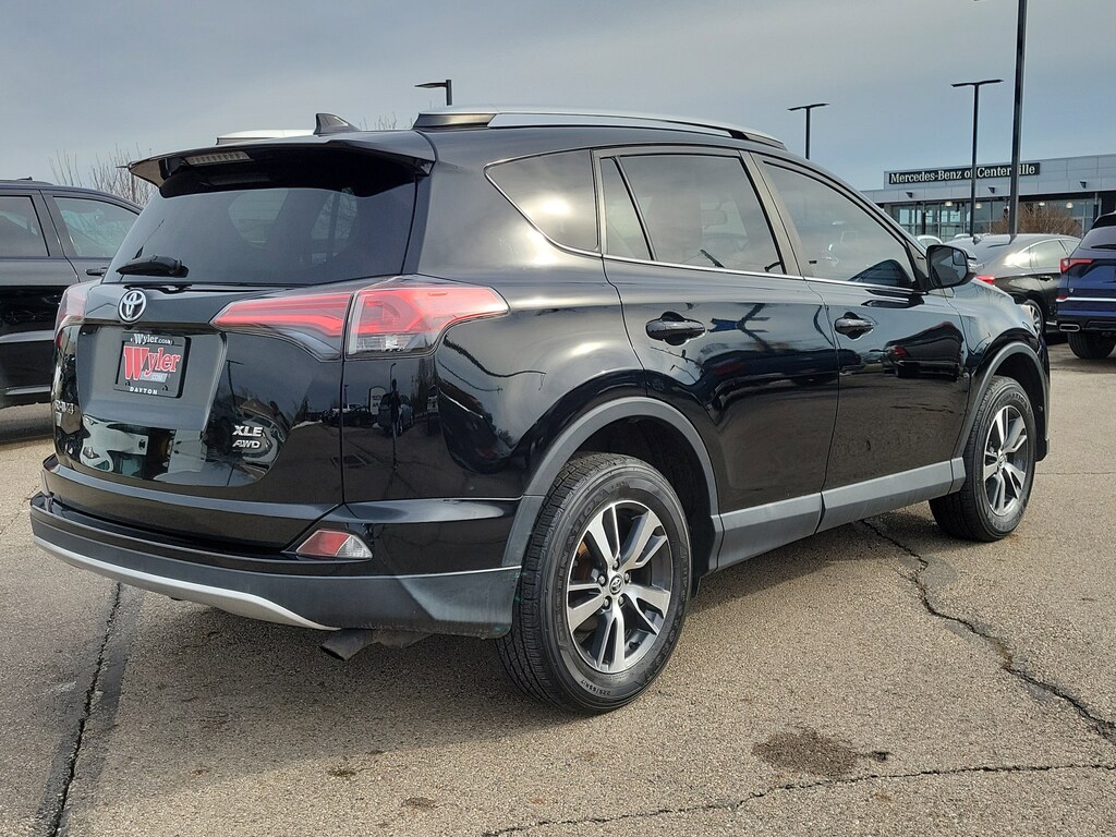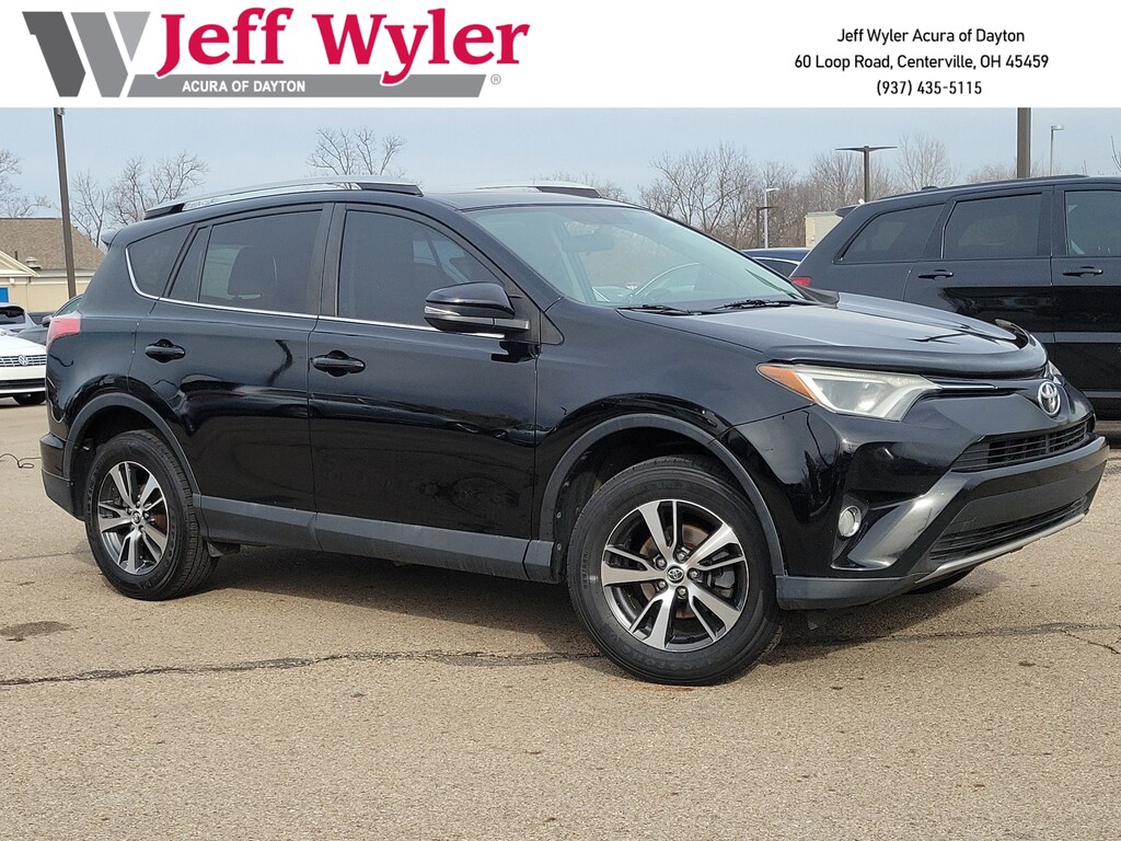 Jeff Wyler Acura of Dayton is proud to offer this attractive-looking 2016 Toyota RAV4 XLE in Black. AWD, Black w/Fabric Seat Trim, 4-Wheel Disc Brakes, 4.071 Axle Ratio, 6 Speakers, ABS brakes, Adaptive Cruise Control, Air Conditioning, Alloy wheels, AM/FM radio: SiriusXM, Automatic temperature control, Brake assist, Bumpers: body-color, Driver door bin, Driver vanity mirror, Dual front impact airbags, Dual front side impact airbags, Electronic Stability Control, Exterior Parking Camera Rear, Fabric Seat Trim, Four wheel independent suspension, Front anti-roll bar, Front Bucket Seats, Front Center Armrest, Front dual zone A/C, Front fog lights, Front reading lights, Front Sport Seats, Heated door mirrors, Illuminated entry, Knee airbag, Leather steering wheel, Low tire pressure warning, Occupant sensing airbag, Outside temperature display, Overhead airbag, Overhead console, Panic alarm, Passenger door bin, Passenger vanity mirror, Power door mirrors, Power Liftgate, Power moonroof, Power steering, Power windows, Radio data system, Radio: Entune Audio Plus AM/FM/MP3/WMA Playback, Rear anti-roll bar, Rear seat center armrest, Rear window defroster, Rear window wiper, Remote keyless entry, Roof rack: rails only, Speed control, Speed-sensing steering, Split folding rear seat, Spoiler, Steering wheel mounted audio controls, Tachometer, Telescoping steering wheel, Tilt steering wheel, Traction control, Trip computer, Turn signal indicator mirrors, Variably intermittent wipers, and Wheels: 17" x 7.0J 5-Spoke Superchrome Alloy Our PRE-OWNED vehicles are put through a rigorous 167- POINT QUALITY ASSURANCE INSPECTION along with an average amount of over $1,400.00 SPENT to recondition each vehicle so we can be sure to deliver you the highest quality vehicle like you deserve! ***ONLINE PRICE DOES NOT INCLUDE WYLER FAMILY FIRST PACKAGE***